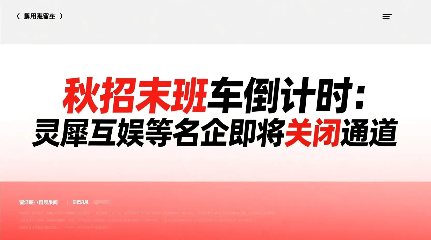 2025年12月,对于26届应届毕业生而言,是决定未来走向的关键节点。秋招已进入最后收尾阶段,而一场无声的竞争正在悄然落幕。据最新信息显示,包括阿里巴巴-灵犀互娱在内的多家知名企业,将在2026年1月9日正式关闭秋招通道。