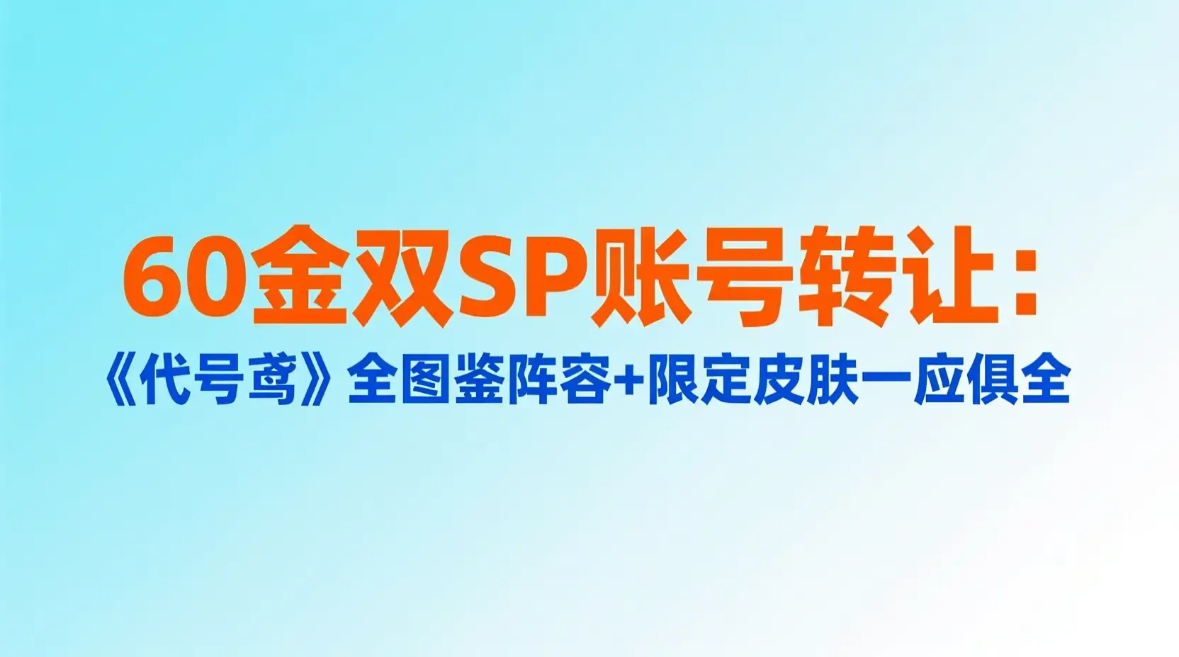 近日,一则关于《代号鸢》游戏账号转让的信息在小红书引发热议。该账号为高完成度账号,适合希望快速入坑或补全图鉴的玩家接手。以下是详细信息汇总: