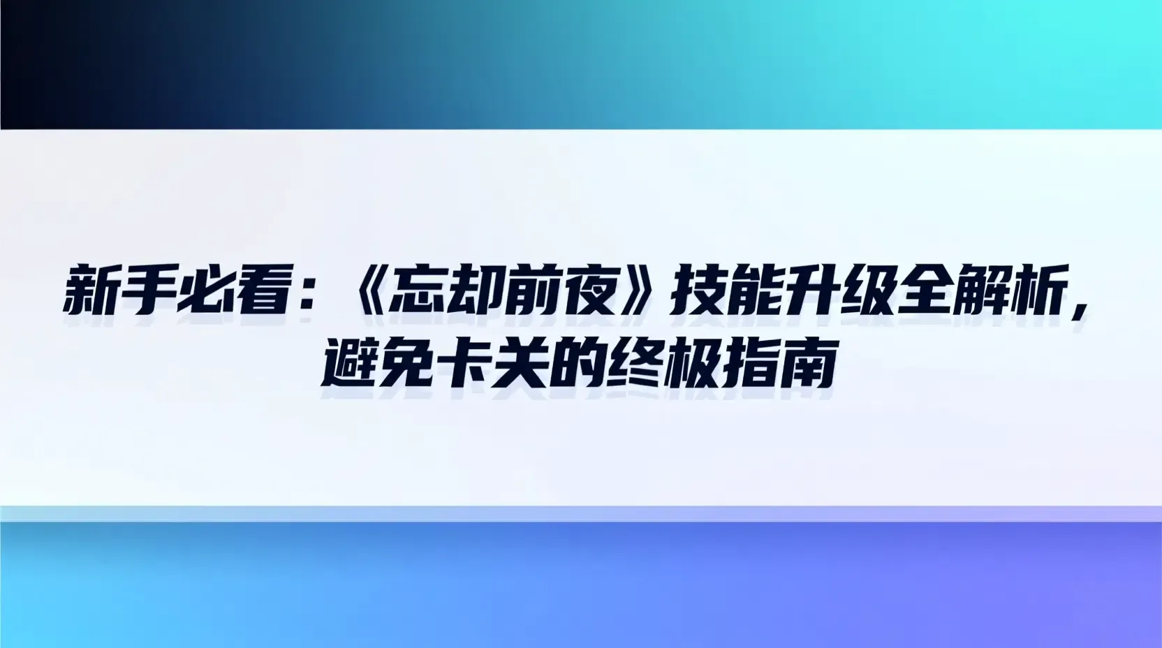 新手必看:《忘却前夜》技能升级全解析,避免卡关的终极指南