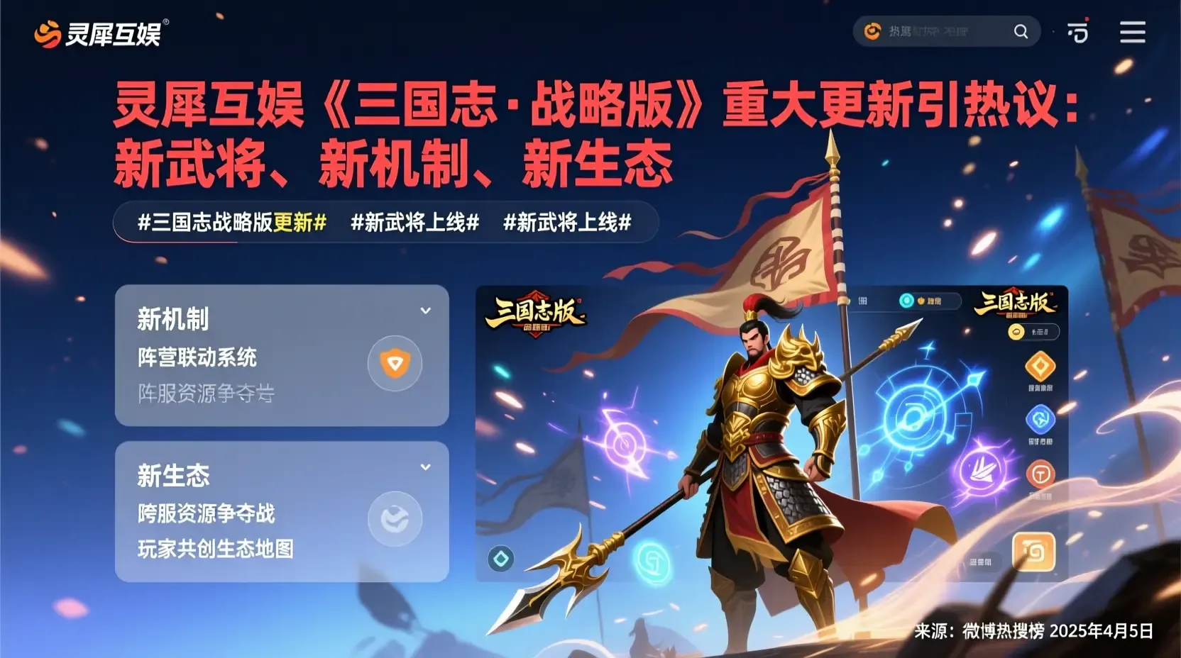 近日,灵犀互娱旗下旗舰级策略手游《三国志·战略版》迎来重大版本更新,再度引发玩家社区的广泛讨论。根据今日多条微博信息显示,此次更新不仅带来了全新的武将系统、赛季机制优化,还进一步深化了联盟协作玩法,被不少核心玩家称为‘近年来最具诚意的一次迭代’。