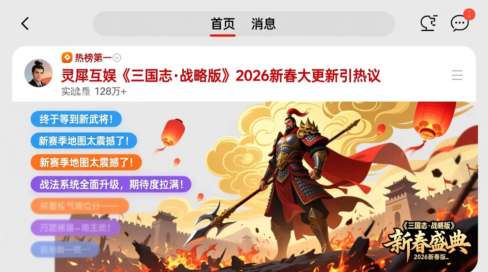 灵犀互娱《三国志·战略版》2026新春大更新引热议