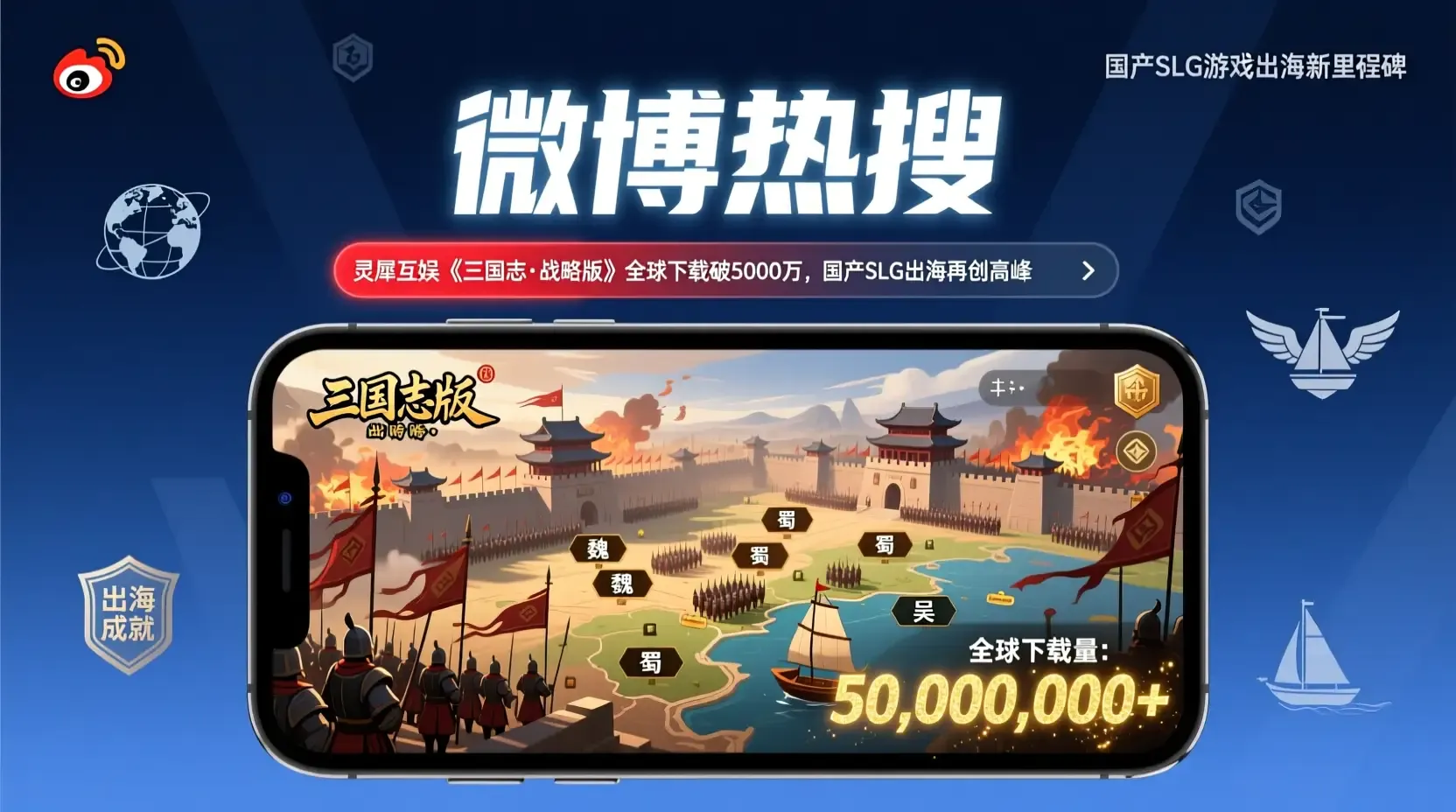 近日,灵犀互娱旗下战略手游《三国志·战略版》在海外市场持续发力,据微博用户爆料及官方数据披露,该游戏全球累计下载量已正式突破5000万大关,成为继《率土之滨》后,又一款成功出海的国产SLG(策略类)手游。此次成绩不仅刷新了灵犀互娱在海外市场的表现纪录,也标志着中国策略类游戏在全球范围内的影响力进一步扩大。