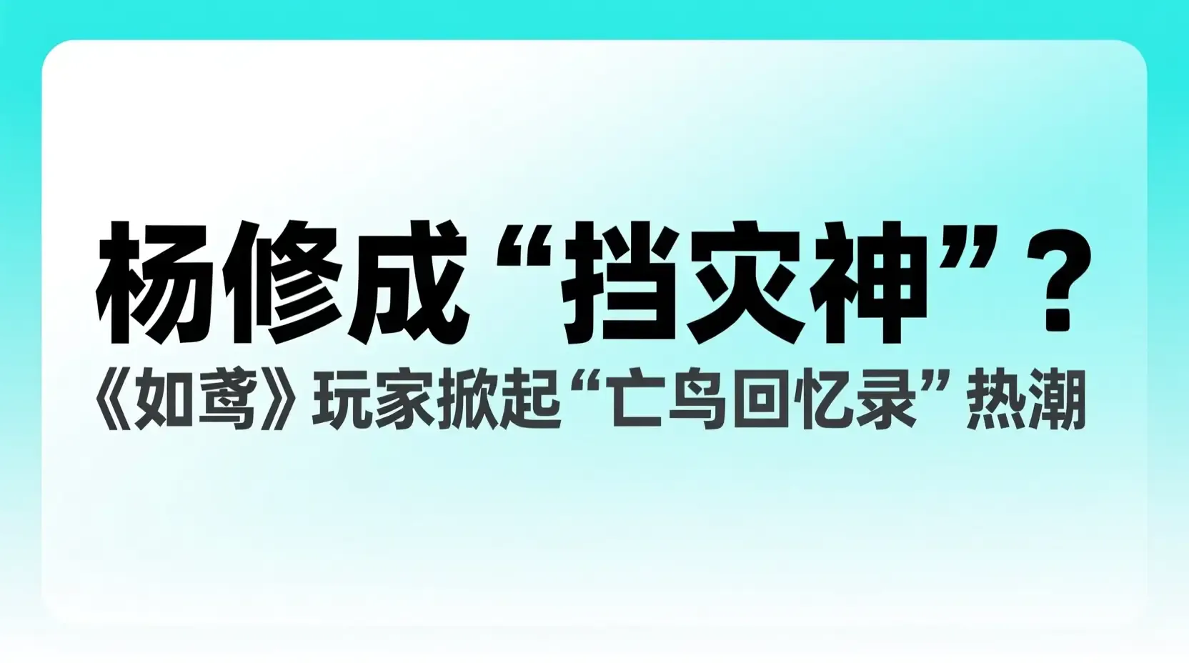 杨修成‘挡灾神’?《如鸢》玩家掀起‘亡鸟回忆录’热潮