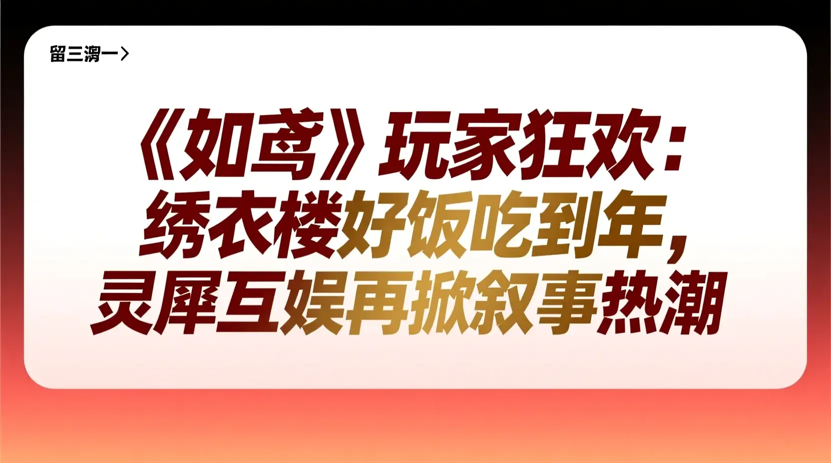 一句来自玩家的真实吐槽,瞬间点燃了小红书上对灵犀互娱旗下女性向手游《如鸢》的集体回忆潮。随着话题#绣衣楼好饭吃到年#持续发酵,玩家们纷纷晒出游戏中的高光剧情片段、角色互动彩蛋,以及那些“又甜又刀”的经典对白。