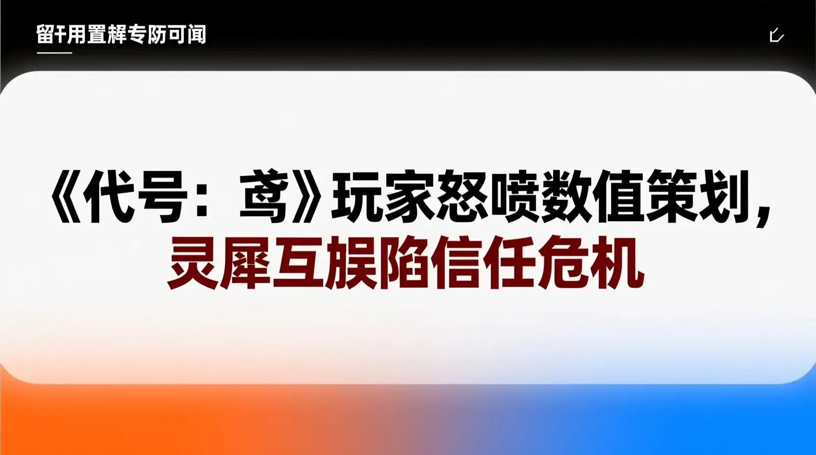 《代号:鸢》玩家怒喷数值策划,灵犀互娱陷信任危机