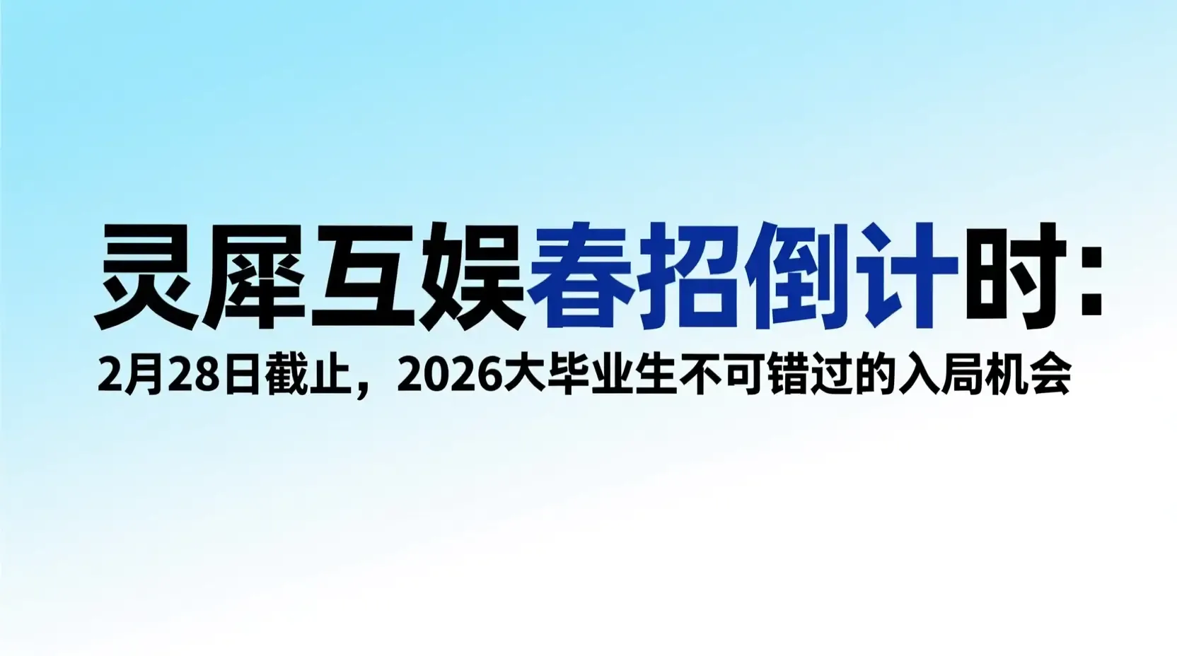 2月已至中旬,春招战火悄然升温。灵犀互娱春招通道即将于2月28日正式关闭,留给2026届毕业生的时间已进入倒计时。