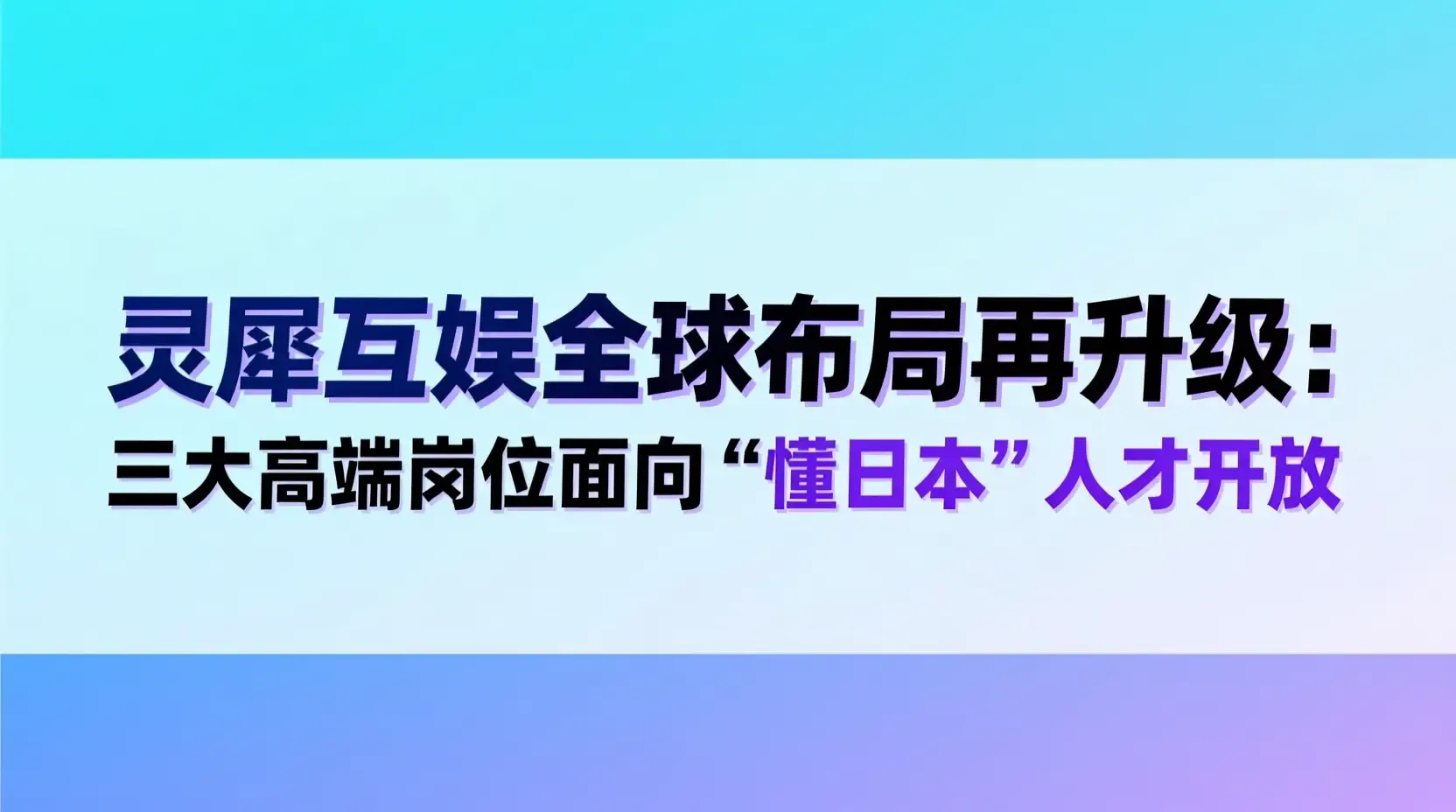 灵犀互娱全球布局再升级:三大高端岗位面向‘懂日本’人才开放